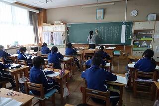 「は」と「を」を使った文章を作ります。できた児童は黒板に書きます。