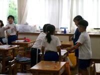 昨年に続き「よさこいソーラン」をするので、4年生が3年生に教えながら練習します。