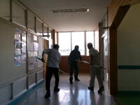 昼の放送の仕事で、放送委員のほか、保健給食委員や運営委員が集まります。