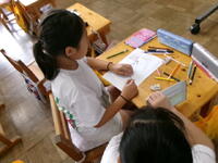 1年図工、模様や凸凹を紙に写します。版画につながる表現です。