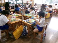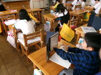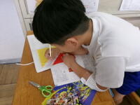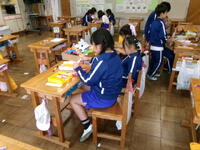 2年学活、お楽しみ会に向けてゲームの道具やプレゼントを準備します。