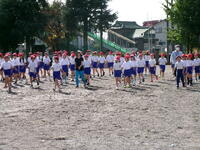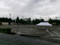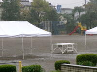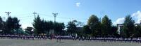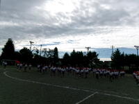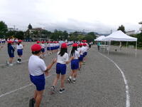 今朝は少し晴れ間が見えます。閉会式の練習です。