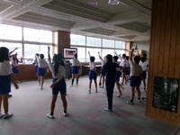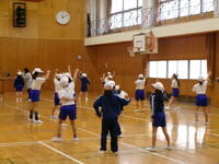 今朝は雨が降っているので体育館で練習です。応援練習です。