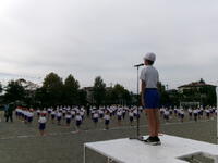 朝の全校練習では、団長が全校生にめあてを伝えてから練習が開始されます。