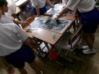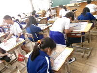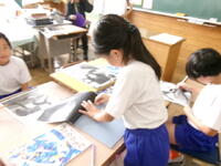 4年図工、版画。この時期の図工は版画がどの学年も計画にあります。