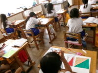 2年算数、図形。長方形と正方形から三角形の学習をします。