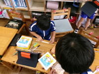2年生活、藤原図書館や鉄道利用したことを振り返り、カードにまとめます。