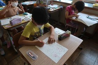 2年2組の図画工作「絵の具で絵を描こう」