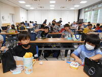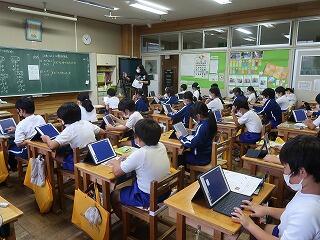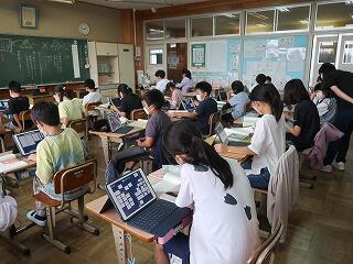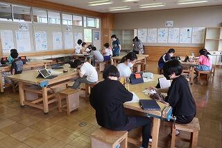 「これからの食料生産」のテストを行いました。終わったら臨海自然教室新聞をタブレットで作成します。