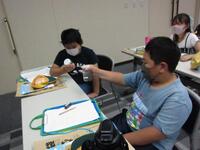 「夏休みで楽しかったこと、食べたもの」について質問する場合の話し方を2人組になって練習します。