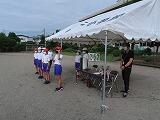 今日は、ブラスバンドの生演奏に合わせて閉会式を行いました。ブラスバンドの皆さんの演奏に合わせて優勝旗、準優勝杯授与の練習を行いました。代表児童もブラスバンド部の皆さんの演奏もとても上手です。
