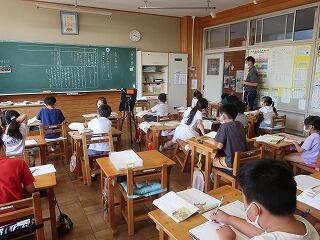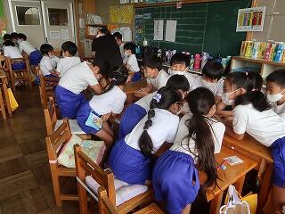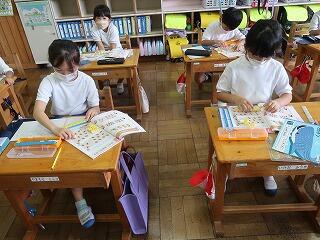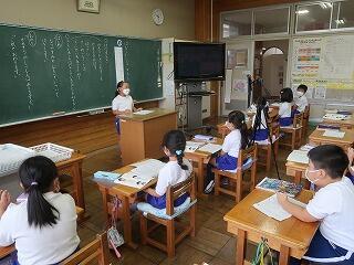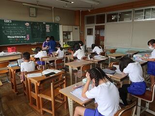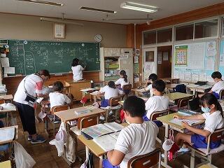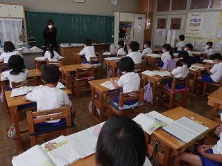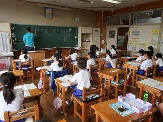 1年生の国語の書き方の授業に学習支援ボランティアさんが来てくださいました。1年生は、1学期からひらがなの文字を書くようになりました。まだまだ慣れていません。書き方の時簡に筆順を含めて丁寧な文字を書けるように支援を手伝ってくださる学習支援ボランティアさんがいます。お忙しい中、大変ありがとうございました。