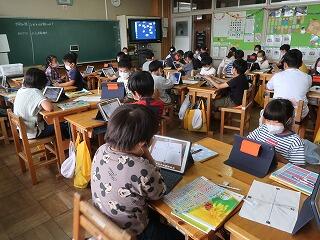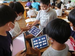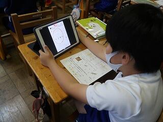 「いろいろな図形」のテストを行いました。終わったら臨海自然教室新聞をタブレットで作成します。