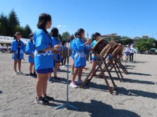 太鼓の皆さんも笛の皆さんもあっという間に上達しました。今日からは、太鼓と笛を合わせてみんなで練習を開始しました。火曜日には、全体練習で児童全員が踊るために演奏します。こんなにすぐに上達するなんて子どもは天才です!