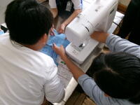 縫い方、ミシンの使い方をボランティアの方が見守り、教えてくれます。