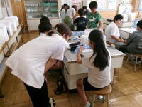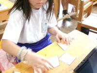 5年家庭科、ミシンを使ってランチョンマットをつくります。