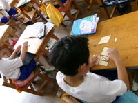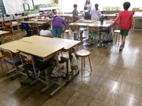 昼休み、今日は4年生が親子学習なので、会場準備をしています。