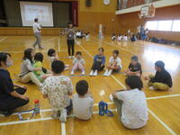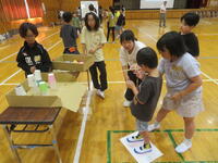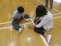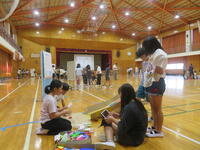 各グループの活動では、8つのグループに分かれボール投げ、輪投げ、宝探しゲームなど様々な活動をしました。タブレットを使って作ったルールを見せながら説明をしたり、優しい言葉掛けをしたりする姿が見られ、成長を感じました。