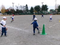 けった人はその前にカラーコーンを往復出来たら得点です。