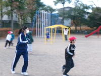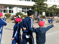 とても楽しそうです。6年生はけいどろをしました。いつもは捕まらない人も中学生には捕まってしまいました。