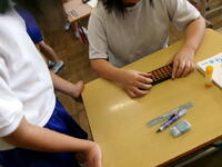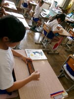 4年算数、そろばんを使って数をあらわしたり、簡単な計算をしたりします。