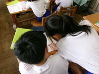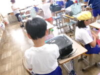1年音楽、鍵盤ハーモニカを演奏するために、強く、弱く、いろいろな息の吹き出しをします。