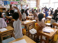 今日は校内研究授業の日で、2年英語、5年国語の授業を職員が参観しました。