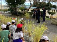 5月に種もみから芽出しをし、種まき、田植えをし、夏休みも家に持ち帰って大切に育ててきた稲。今日(30日)はいよいよ稲刈りです。JA上都賀の職員の皆さんが来校され、稲の刈り方を教えてくださいました。初めて稲刈りをする児童もいて、ドキドキしながら稲刈りをしていました。上手に稲を刈ることができてみんなとても満足そうです。