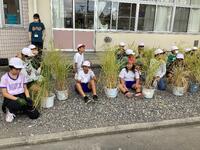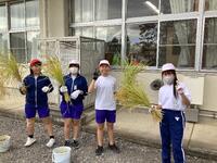 「初めて稲刈りをしたけれど、とても楽しかった。」「JAの方が、優しく教えてくれてうれしかった。」「できたお米を食べるのが楽しみ。」などと、児童はみんなうれしそうに話をしていました。49人で育てたバケツ稲からどのくらいのお米が収穫できるか楽しみです。収穫したお米は、家庭科の時間に調理する予定です。