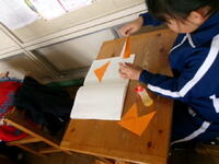 4年算数、立方体と直方体の特徴を実物を見ながら確かめます。