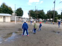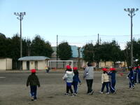 昼休み、学級によってはみんなで遊んでいます。おにごっこ、けいどろなどが多いです。