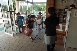 ボランティアさんも児童も最初に検温と消毒