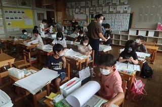 久しぶりに児童の元気な声が戻ってきました。今市公民館杉並木大学の皆さん、地域や保護者のボランティアの皆さんに支えられてサマースクールを実施しました。初日は、習字と絵画の教室でです。ボランティアの皆さんの支援をいただきながら習字やポスターの作品に取り組みました。指導いただくと作品が素晴らしくなっていきます。児童も真剣なまなざしで取り組んでいました。お忙しい中御協力くださったボランティアの皆様大変ありがとうございました。