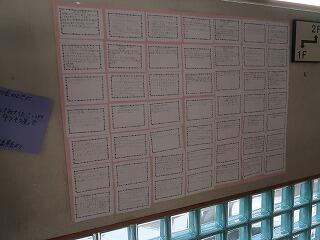 代表委員会で呼びかけた「ありがとうのメッセージ」が壁いっぱいに貼られています。友達だけでなく、ボランティアさんや保護者、教職員に向けた感謝の気持ちが綴られています。読んだ私もうれしくなって幸せな気持ちになりました。朝礼等でお願いしている「ありがとうは人が幸せになる魔法の言葉」として感謝の言葉を大切にして生活している皆さんがたくさんいることは、すばらしいことです。ぜひ来校した際に御覧ください。