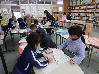 図書室に行って自分が紹介したい本を選び、紹介カードにまとめます。1冊目が終わったら次の本を選んで紹介カードにまとめます。5冊分も紹介カードを書いてくれた児童もいました。