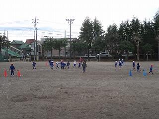 4チームに分かれてミニサッカーゲームを行いました。みんな寒さに負け宇、一生懸命ボールを追いかけています。