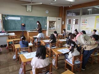 今年最後の書き方ボランティアのみなさんが来てくださいました。2学期まとめの学習です。左利き、右利きで書く欄が違います。ボランティアさんに丸をもらいながら意欲的に取り組みました。