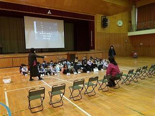 今日は、学校の近くのせせらぎ保育園の次年度入学予定の年長さんと1年生の交流学習が行われました。1年生は、初めて自分たちよりも年齢の下の子どもたちがいるということでお兄さん、お姉さんの自覚が生まれたようです。一生懸命、司会や係に取り組んで頑張っていました。