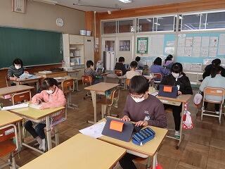 1名ずつ「のびゆくすがた」を担任が励ましながら別室で渡していきます。待っている間に2学期の漢字のまとめドリルに取り組みます。