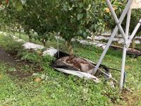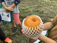 果樹ほ場では、「にっこり」の生育について話を聞きました。機械で水の管理をしたり、生産者が実を収穫しやすい大きさの木になるように品種改良していることなどを教えていただきました。