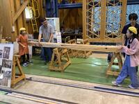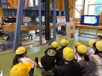 昼食後は林業センターに行きました。林業センターでは、森林の役割について教えていただいたり、林業センターで開発されたはたけしめじを見せていただいたりしました。最後に木材がどのくらいの力まで耐えられるかの実験を見せていただきました。約6トンの力まで耐えられることが分かり、驚いていました。