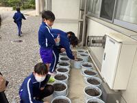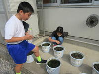 5年生は、バケツ稲に取り組んでいます。5月にJA上都賀の皆様から、種籾をいただき、芽出しをするところから始めました。