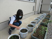 5月18日にバケツに芽が出た種籾をまきました。子供たちは毎日様子を見にいって、タブレットに写真を撮り、成長の記録を残したり、水やりをしたりと頑張っています。稲が少しずつ大きくなってきたので、頃合いを見て田植えをする予定です。