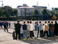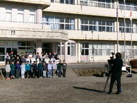 業間、卒業アルバムの集合写真撮影。よい天気すぎてまぶしそうにしていました。