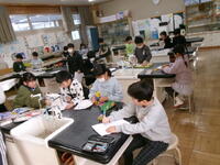 2年国語、お気に入りの本の登場人物から友達になりたい人を紹介するカードを書きます。