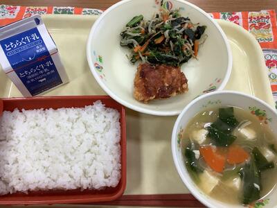 ごはん 牛乳 とりのからあげ いそ香り和え 野口菜のみそ汁