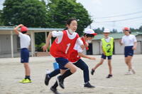 ドッジボールは、「王様」ドッジボールというルールで、1組から3組まで混合の4チームで戦いました。子どもたちは、相手チームにばれないように2人の王様を決め、気づかれないようにボールをよけたり、相手ボールを必死に捕って守ったりして楽しみました。
