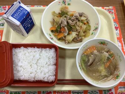 ごはん 牛乳 ホイコーロー えび団子スープ