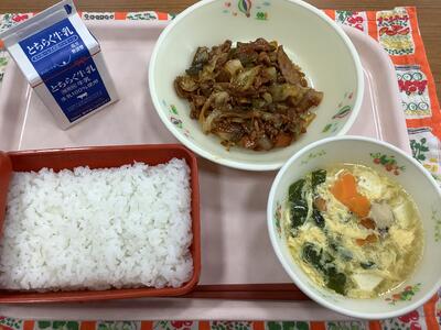 ごはん 牛乳 ホイコーロー 豆腐とわかめのスープ ヨーグルト