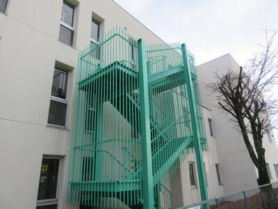 本校では、学校の安全体制の見直しの一環として、老朽化が進んでいた非常階段の塗装の塗り替えを行いました。これまでさびが目立ち、実際に避難が必要な場面を想像すると、子供たちがためらう可能性もある状態でした。塗装を新しくしたことで、見た目も明るく、安全に使うことのできる環境が整いました。日頃から安心して使える状態にしておくことが、学校全体の安全意識の向上にもつながると考えています。これからも、児童が安心して学校生活を送れるよう、安全点検や環境整備を継続的に進めてまいります。